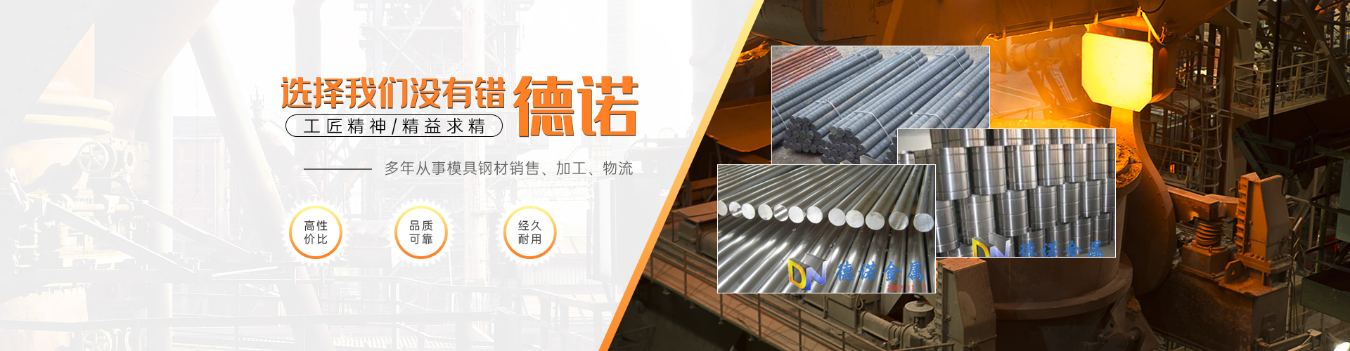 東莞市德諾金屬鋼鐵有限公司成立于2010年,立足于珠江三角洲,是一家集多家進口優(yōu)質(zhì)模具鋼材銷售批發(fā)及機加工服務(wù)于一體的大型企業(yè)。公司投大量資金與世界著名鋼廠簽立優(yōu)特鋼經(jīng)銷權(quán),銷售國內(nèi)著名鋼廠不銹鋼產(chǎn)品  經(jīng)銷國際著名鋼廠進口產(chǎn)品。